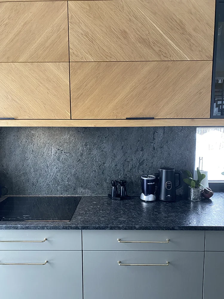 Akmuo ritinyje puikiai tinka kaip dekoratyvinė sienų, baldų fasadų ar durų danga, suteikianti patalpoms modernus personažas. Jo grafito ir sidabro atspalvis puikiai dera su įvairiais išdėstymais, atspindi šviesą ir suteikia erdvei subtilaus švytėjimo.