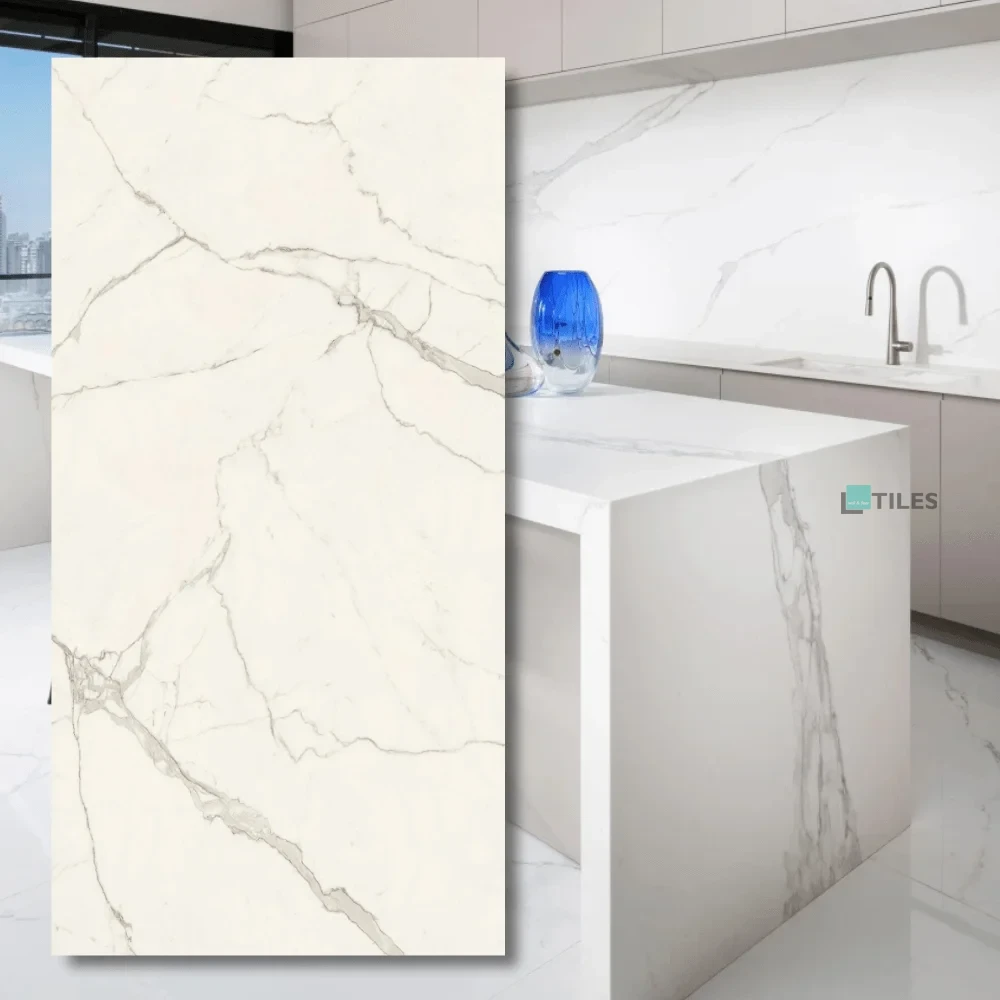 - Didelio formato marmuras porcelianinės keramikos plokštės. Atlas Plan Calacatta Extra pasižymi kompaktišku, šviesiai baltu pagrindu su akį traukiančiomis pilkomis gyslomis ir auksiniai atspindžiai. Marmuro efektas, puikiai tinkantis tiek klasikiniame, tiek moderniame interjere, todėl jį lengva derinti su kitomis medžiagomis ir efektais. Balta spalva ir subtilios gyslos suteikia porcelianinei akmens masės plokštei elegantišką, rafinuotą charakterį. Dydis 162 x 324 cm o 6 mm storis taip pat leidžia be problemų naudoti spintelėse ir stalčių fasaduose, užtikrinant vizualiai vienodą efektą.